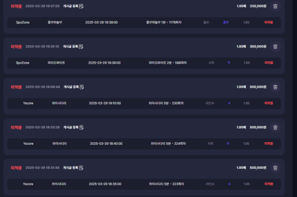 1승 19패 베팅내역 보여드립니다. 배너달고 자체쥬작게임으로 회원죽이는사이트 박제합니다.